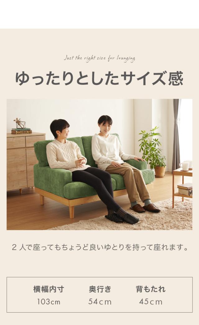 座面は幅103×奥行54cmで2人で使っても、ゆったり座れる快適な広さです。