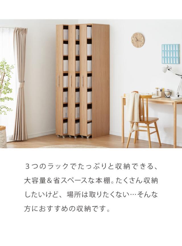 本棚 スライド スリム 3列 大容量 キャスター付き スライド本棚 書棚 隙間 収納 省スペース コンパクト コミックラック CDラック おしゃれ 省スペース 北欧 シンプル 収納ラック 隠せる【送料無料】