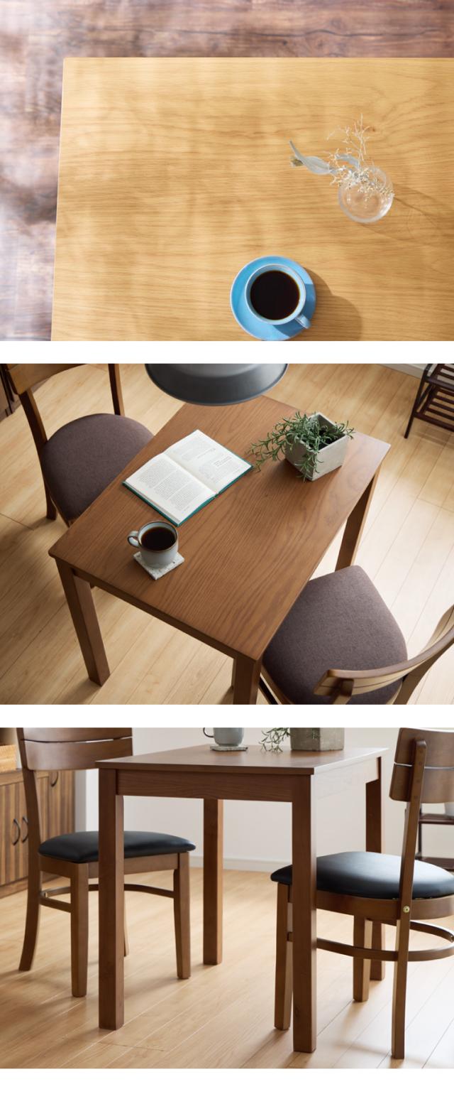 ・80×60cmとダイニングチェア「セナ」の3点セットです。