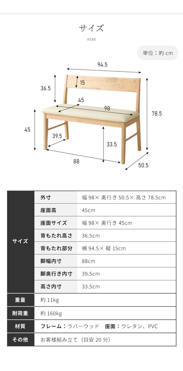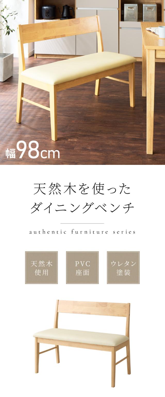 背もたれ付き ダイニングベンチ 幅98cm 背付き ベンチ 2人掛け 2P ダイニング ベンチ 単品 木製ベンチ 背付ベンチ 長椅子 ソファ ソファー 天然木 北欧 おしゃれ 肘無し 食卓ベンチ【送料無料】