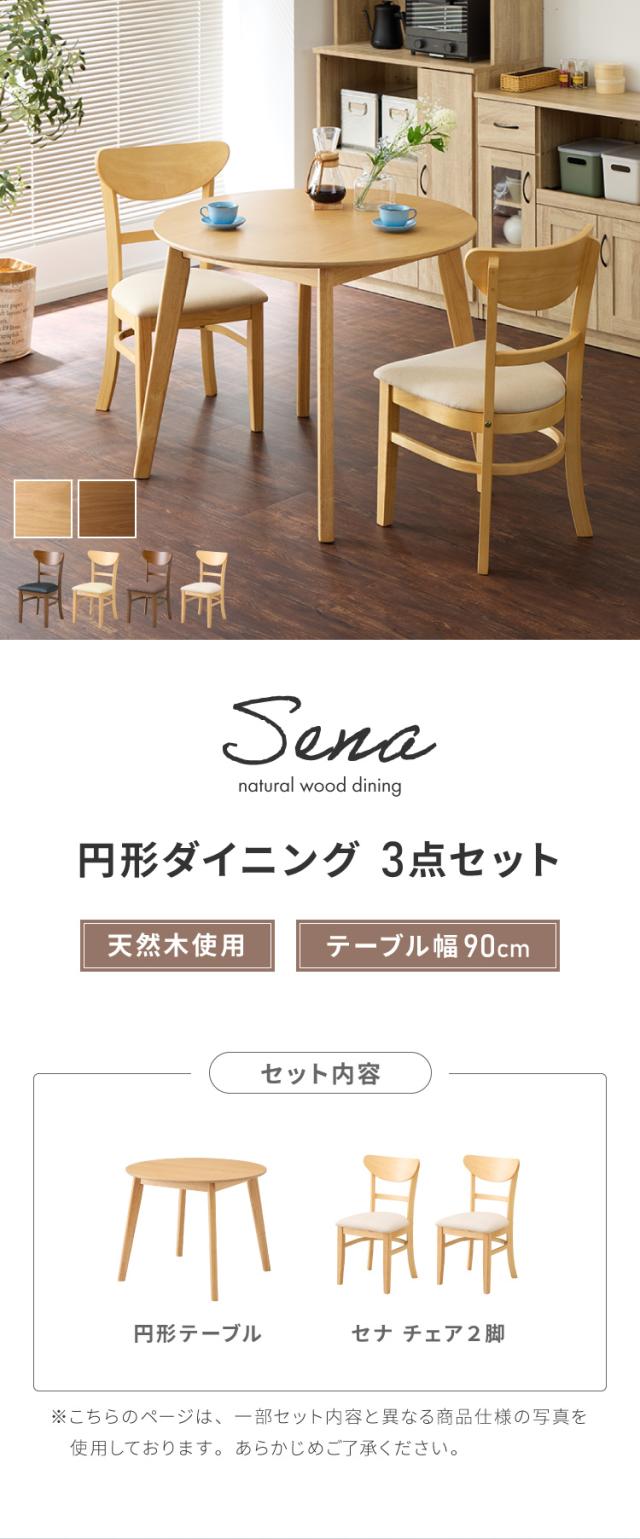 円形 ダイニング3点セット 2人掛け 90×90cm ダイニングチェア セナ 天然木 オーク突板 ダイニング テーブル カフェテーブル ダイニングチェア ダイニングチェアー ナチュラル 木製【送料無料】