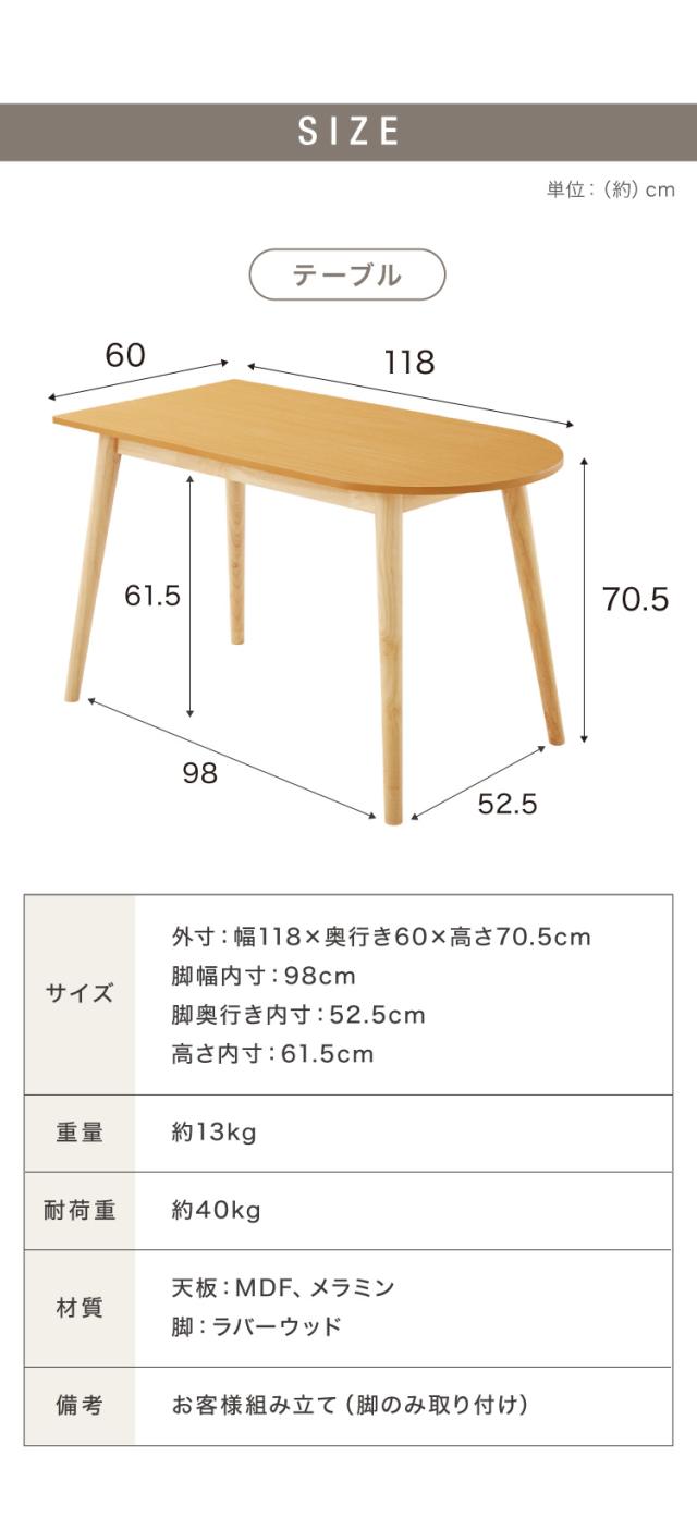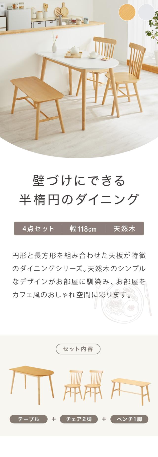 半楕円ダイニングテーブル 118 4点セット