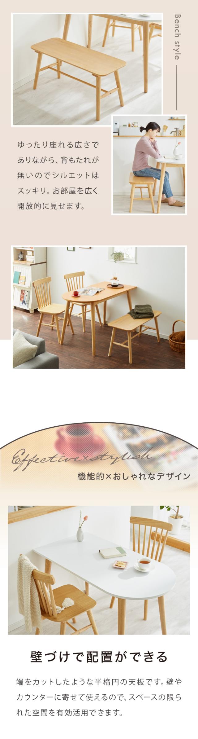 半円 ダイニングテーブル 4点セット 半楕円ダイニングテーブル 118cm 3人用 4人用 ウィンザーチェア ダイニングベンチ 壁付け リビングテーブル ダイニングセット 食卓テーブル 韓国インテリア(代引不可)【送料無料】