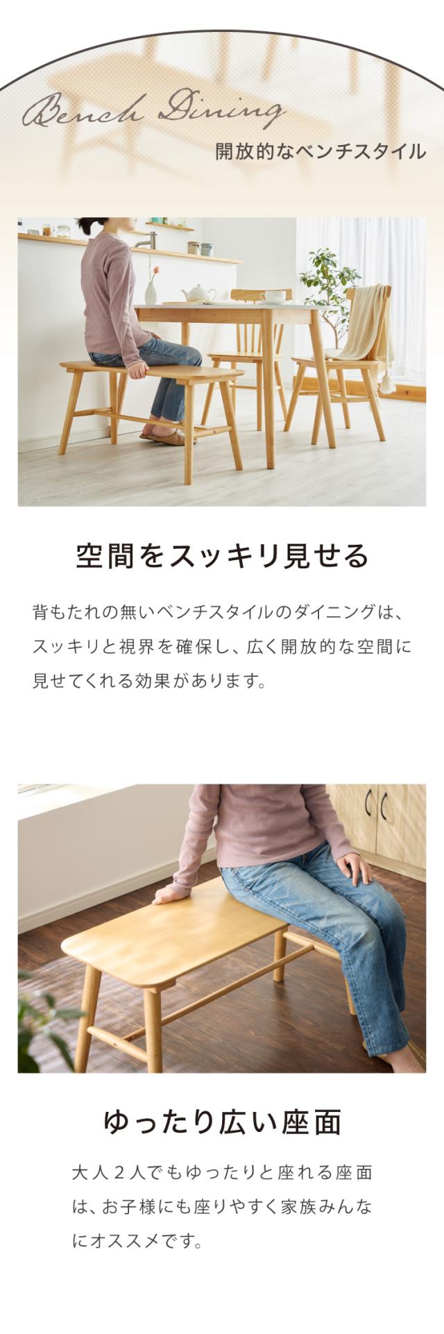 4点セット/テーブルW118cm+チェア2脚+ベンチ