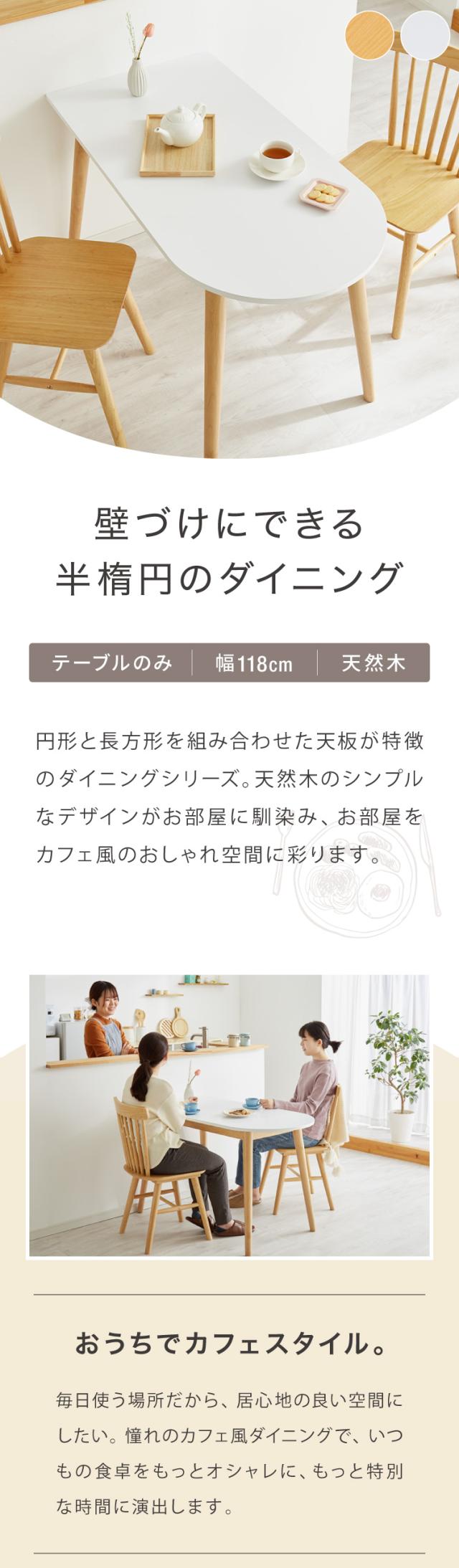 ダイニングテーブル 半円 半楕円ダイニングテーブル 118cm 2人用 3人用 壁寄せできる 壁付け 丸 テーブル リビングテーブル ワンルーム シンプル コンパクト 食卓テーブル 丸 テーブル 韓国インテリア【送料無料】