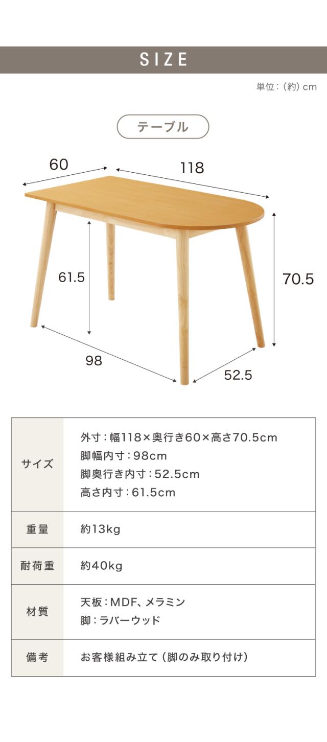 半楕円ダイニングテーブル 118