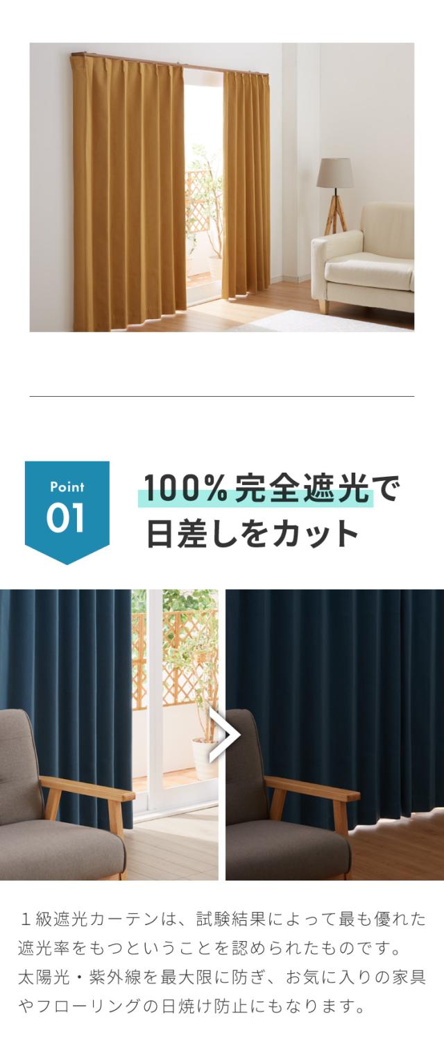 完全遮光/2枚セット | 完全遮光/軽量タイプ/2枚セット | 1級遮光/2枚セット | 1級遮光/防炎/2枚セット |