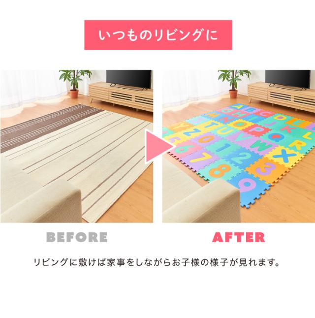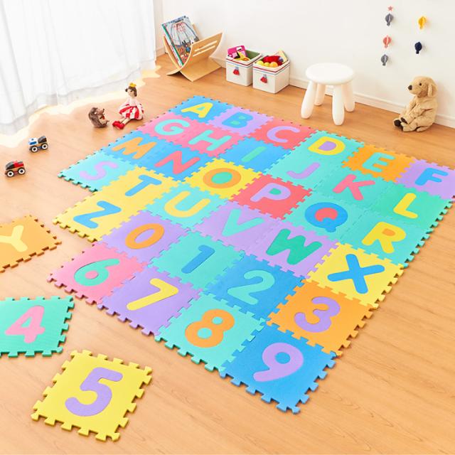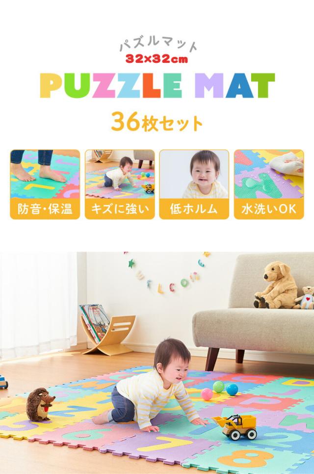 パズルマット 36枚組 10mm 32×32cm ジョイントマット プレイマット マット 36枚セット キッズ 子供部屋 パズル アルファベット 英字 知育 保温 防音 衝撃吸収 耐熱 床暖房対応 水洗いOK【送料無料】