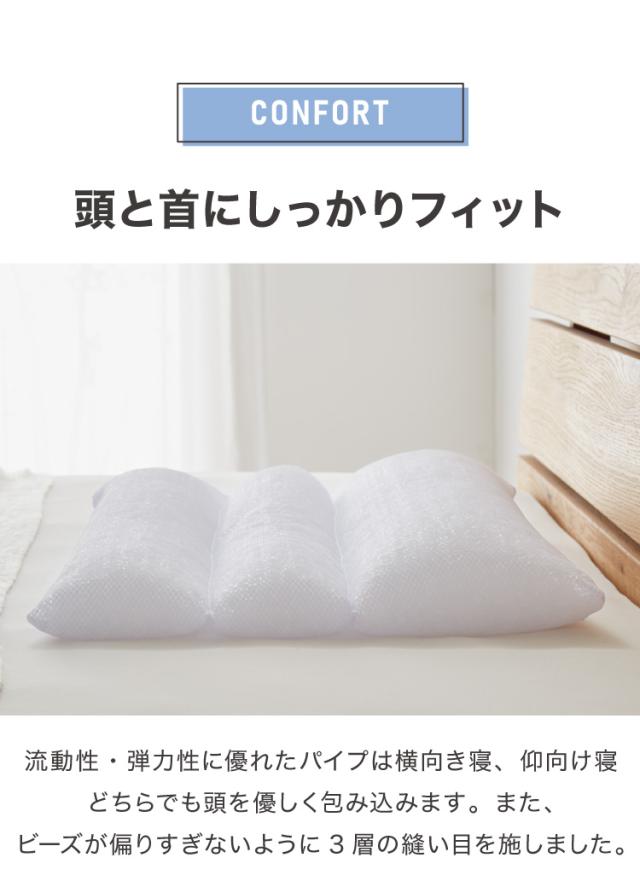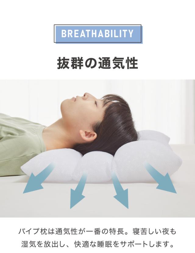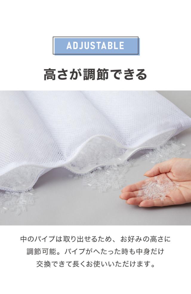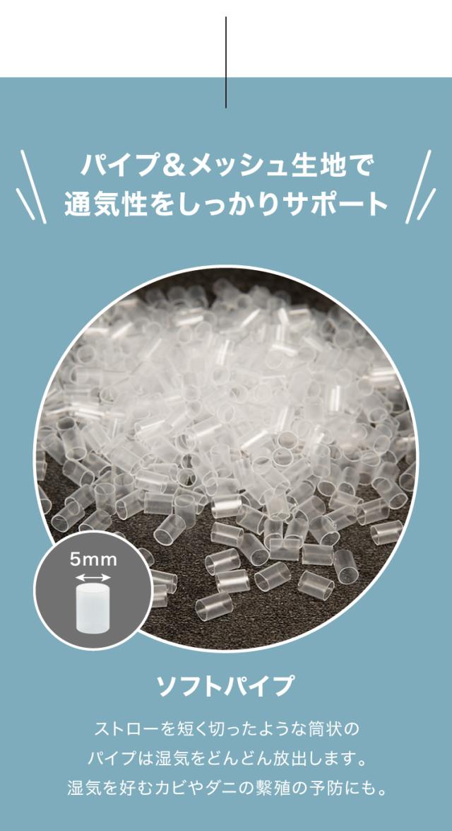 ソフトパイプは綿に比べて弾力性・耐久性が高くへたりにくく、長く使っていただける枕になっております。
