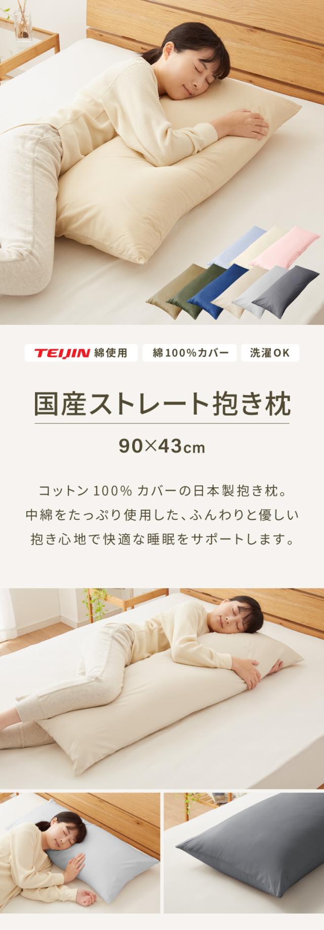 抱き枕 ストレート 日本製 綿100% 90cm テイジン製中綿使用 専用カバー付き 安眠 プレゼント ギフト 横向き かわいい 抱きまくら だきまくら まくら 枕 クッション 【送料無料】