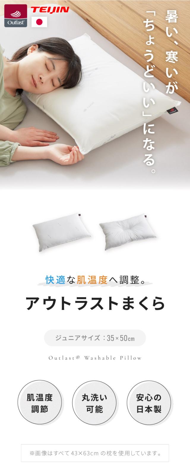 枕 こども用 ジュニアサイズ 35×50cm 日本製 テイジン製中綿使用 洗える シンプル オールシーズン 子供用 ジュニア用 ピロー まくら 温度調整機能素材 ウォッシャブル アウトラスト OUTLAST