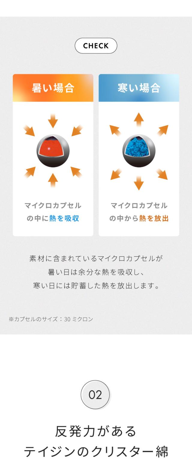 【素材】側生地:綿60%ポリエステル40%(アウトラスト) 中綿:ポリエステル100% 帝人クリスター