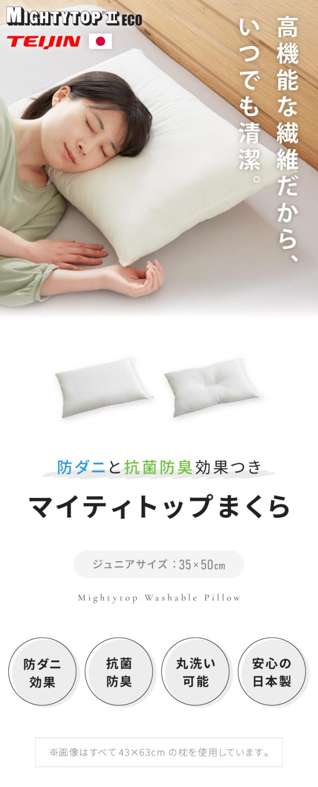枕 こども 日本製 35×50 ジュニア用 テイジン製中綿使用 国産 洗える 丸洗い ウォッシャブル 子ども 睡眠 まくら マクラ 寝具 子どもまくら 子供枕 ジュニア枕 子ども用 マイティ枕 テイジン TEIJIN 送料無料