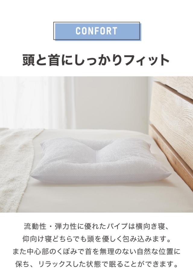 ソフトパイプは綿に比べて弾力性・耐久性が高くへたりにくく、長く使っていただける枕になっております。