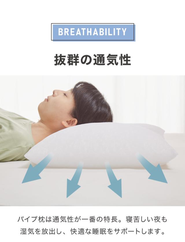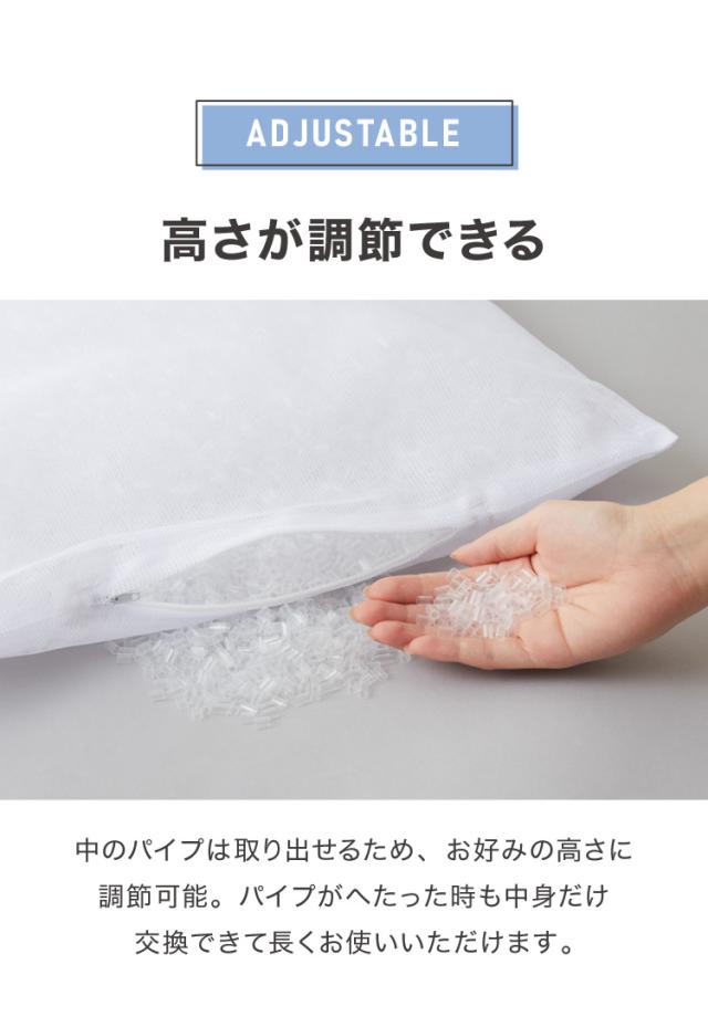 ソフトパイプは綿に比べて弾力性・耐久性が高くへたりにくく、長く使っていただける枕になっております。