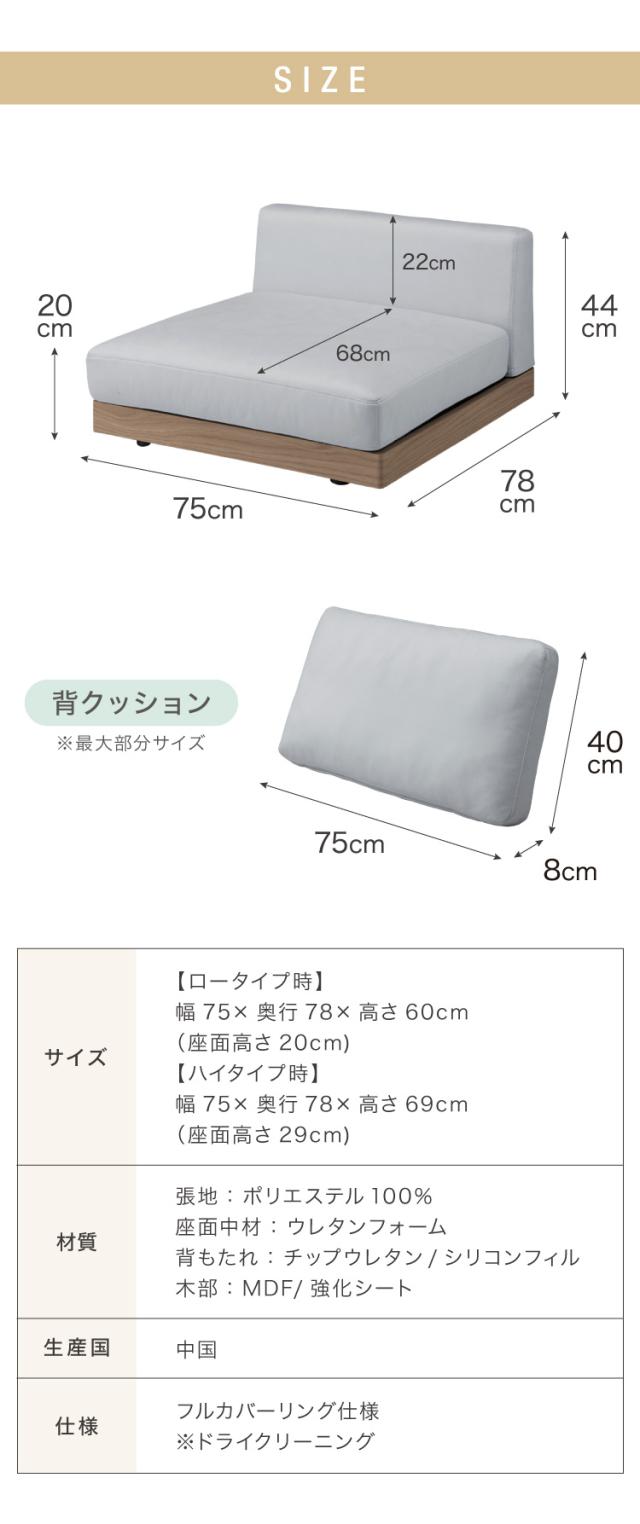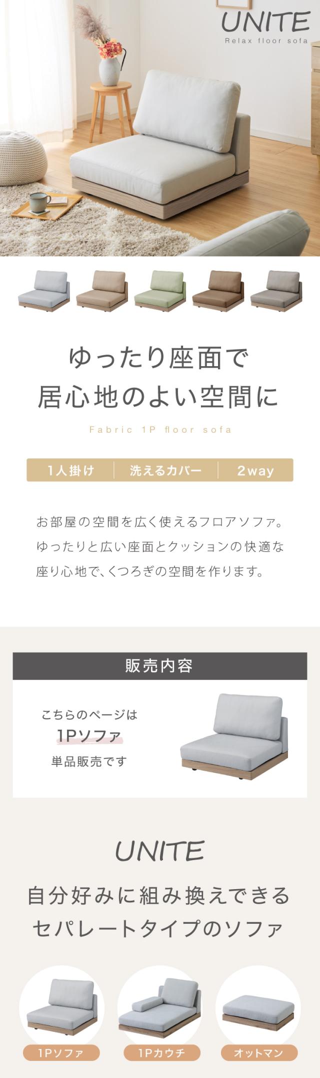 ソファ フロアソファ ローソファ 1人掛け 1P 幅75 座面高さ20 カバーリングソファ 洗える 一人掛け 一人用 組み合わせ ファブリック コーナーソファ sofa ひろびろ座面【送料無料】