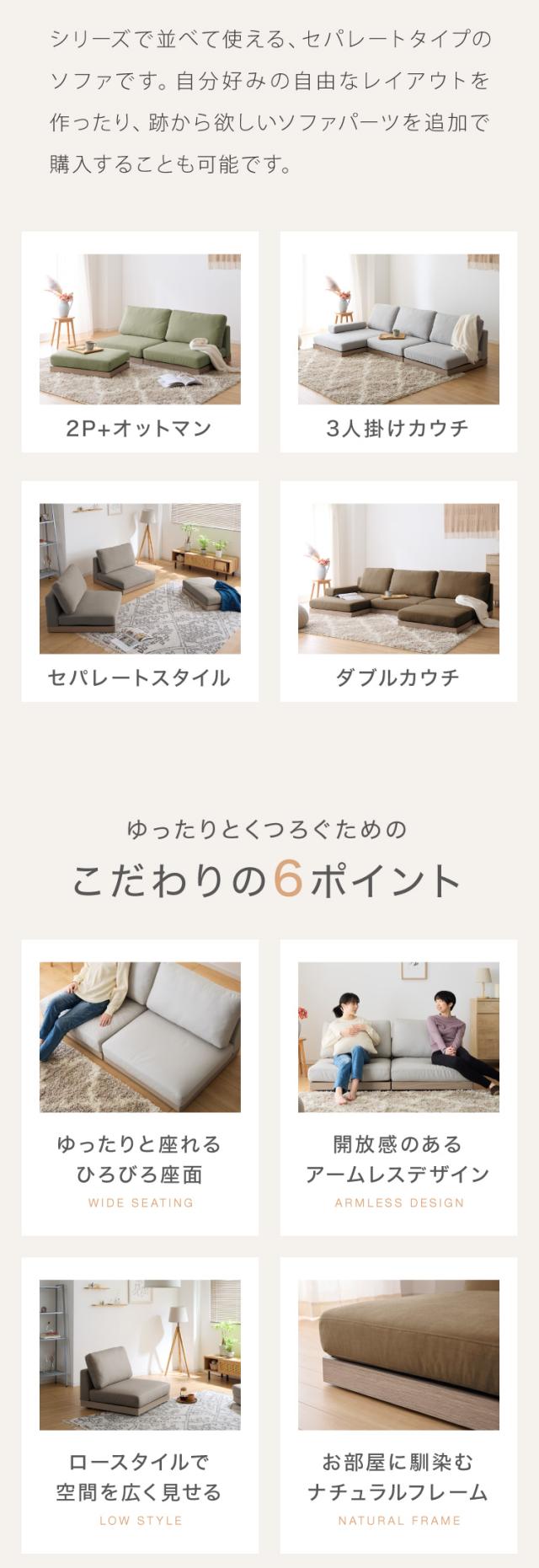 カウチ | オットマン | 1人掛け | 2人掛け |