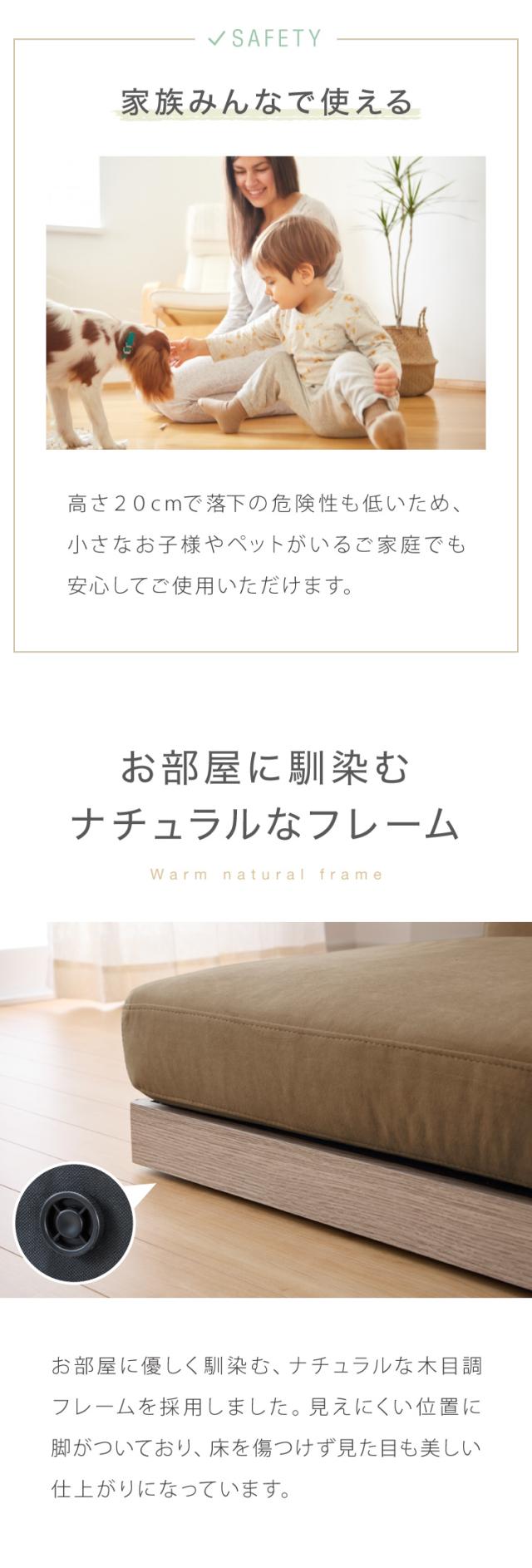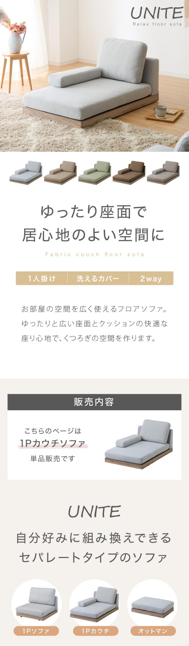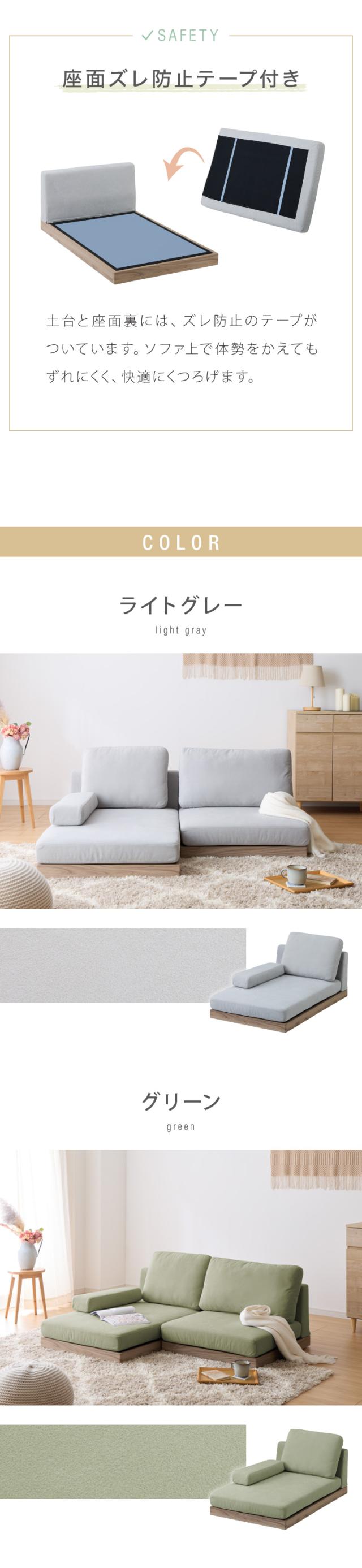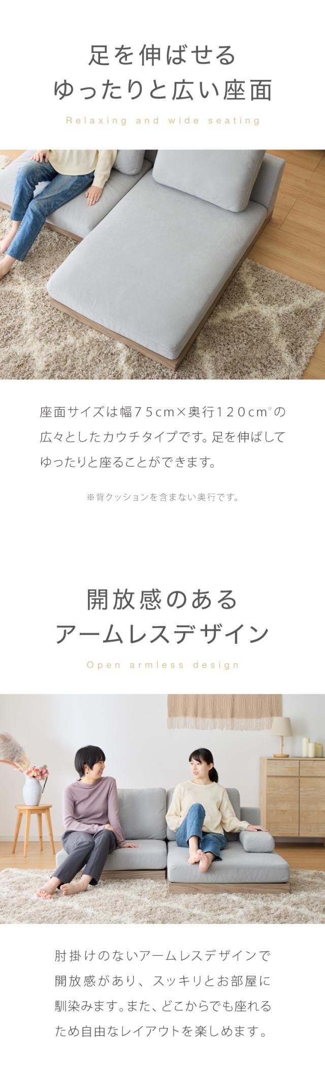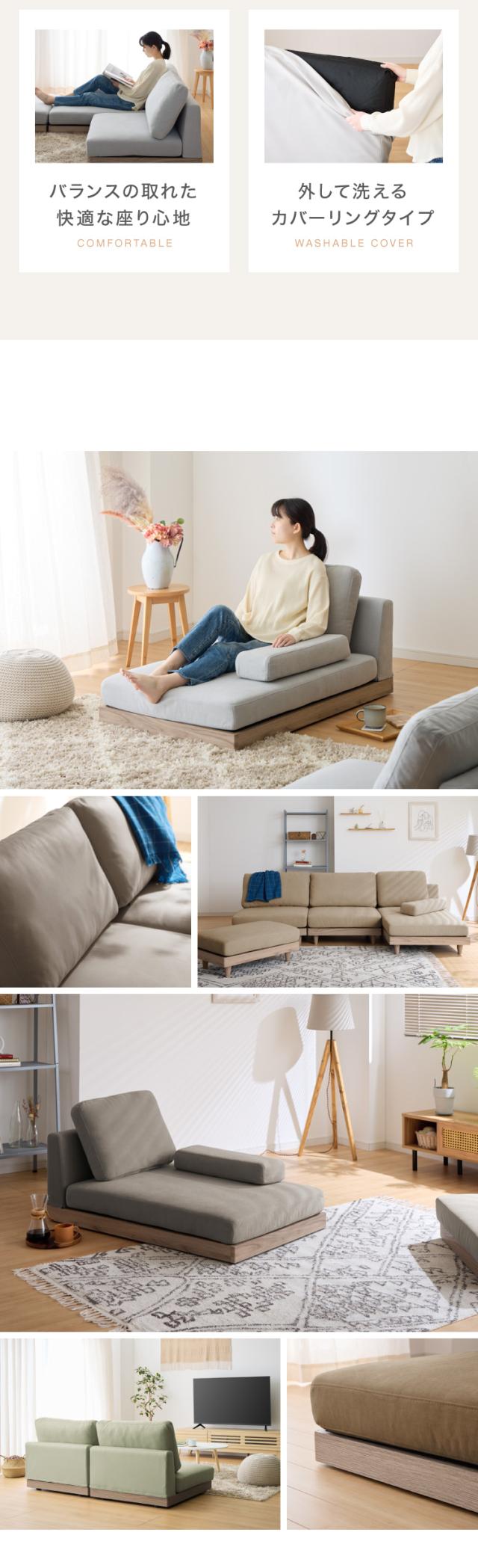 ソファ カウチタイプ 単品 フロアソファ ローソファ 2人掛け 2P 座面高さ20 カバーリングソファ 洗える 二人掛け 二人用 2.5人掛け 組み合わせ ファブリック コーナーソファ sofa ひろびろ座面【送料無料】
