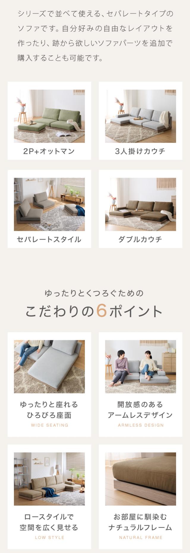 2人掛け/オットマン | 3人掛け/カウチソファ | 4人掛け/カウチソファ | |