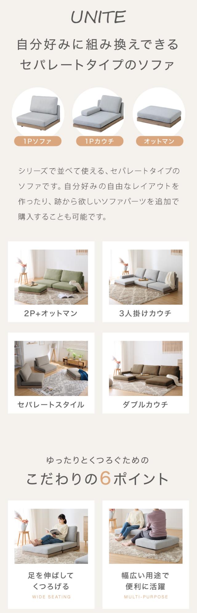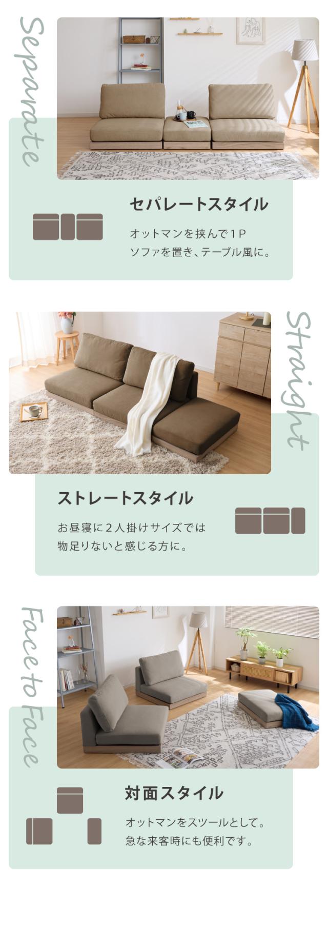 2人掛け/オットマン | 3人掛け/カウチソファ | 4人掛け/カウチソファ | |