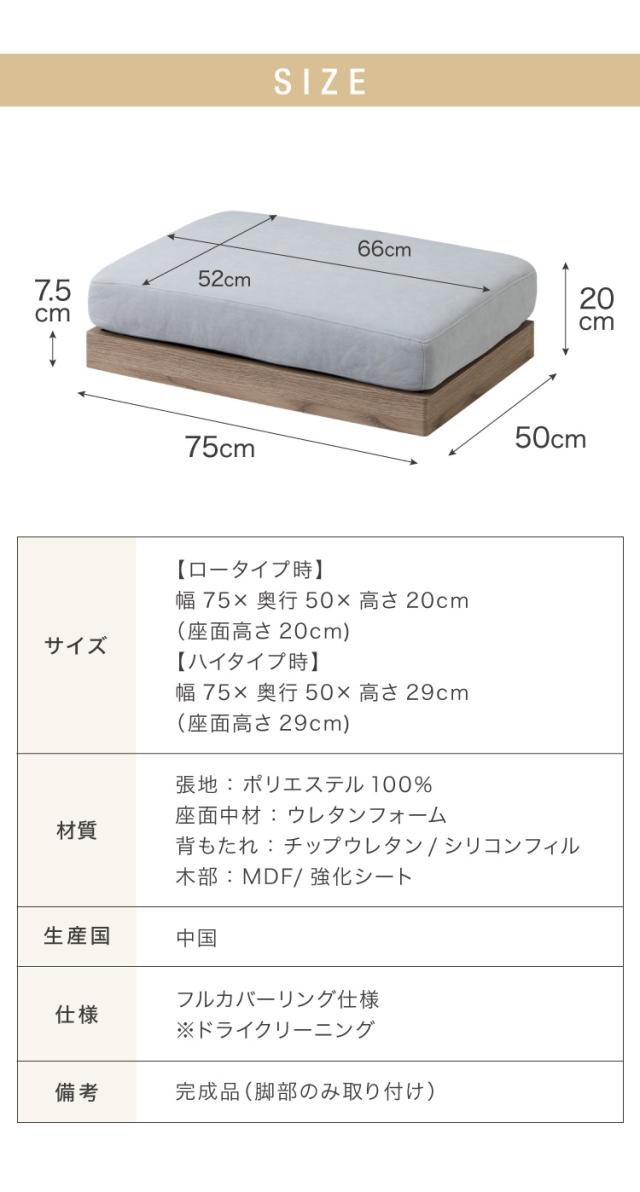 オットマン 単品 スツール ソファ フロアソファ ローソファ カウチソファ 幅75 座面高さ20 カバーリングソファ 洗える 組み合わせ ファブリック コーナーソファ sofa ひろびろ座面【送料無料】