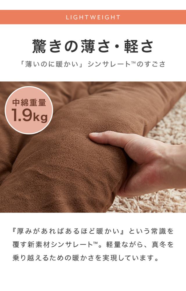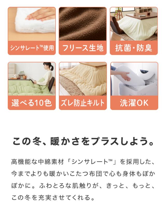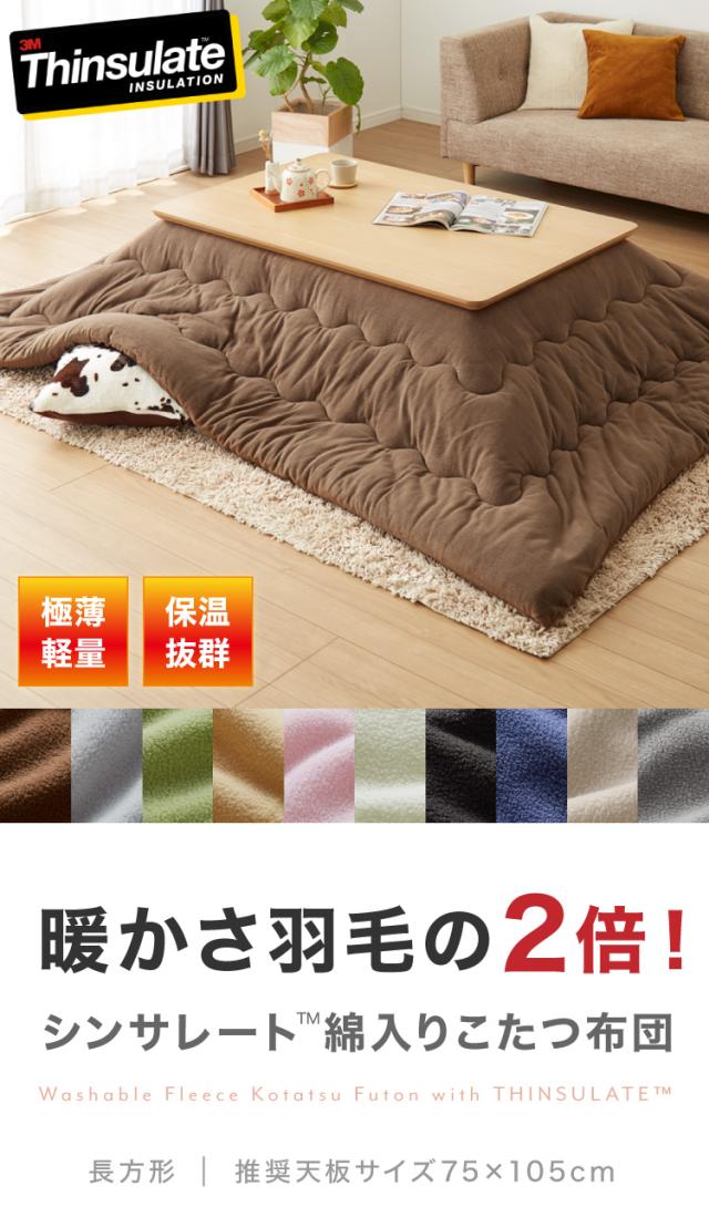 軽くて暖かい高機能中綿シンサレートKK60を使用したこたつ掛け布団が登場!