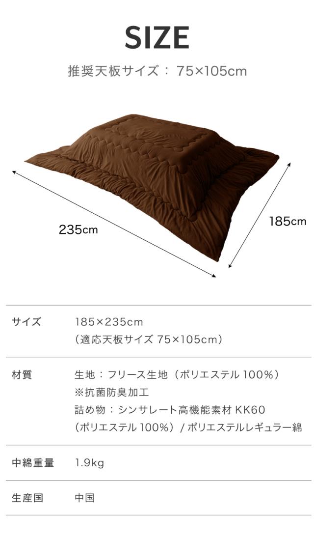 選べる10色 シンサレート入りフリースこたつ掛布団 長正方形 185×235cm 洗える ウォッシャブル 抗菌 防臭 シンプル 無地 柄 北欧 おしゃれ こたつ 炬燵 掛け布団 こたつ布団 掛けふとん【送料無料】