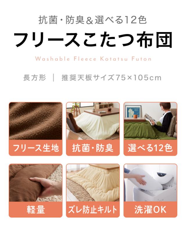 選べる12色 こたつ布団 長方形 185×235cm フリース 抗菌防臭加工 洗える 省スペース こたつ 掛け布団 北欧 おしゃれ あったか【送料無料】