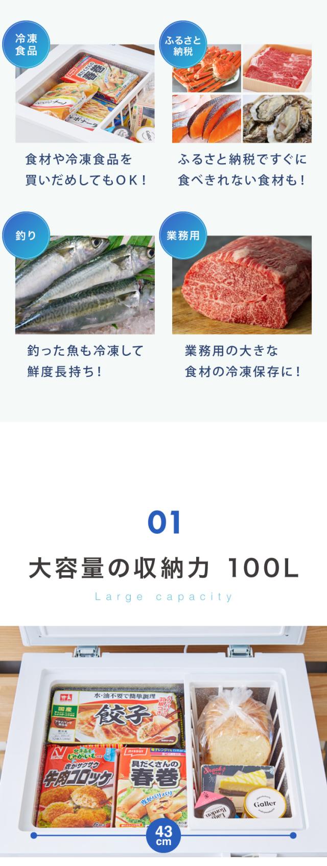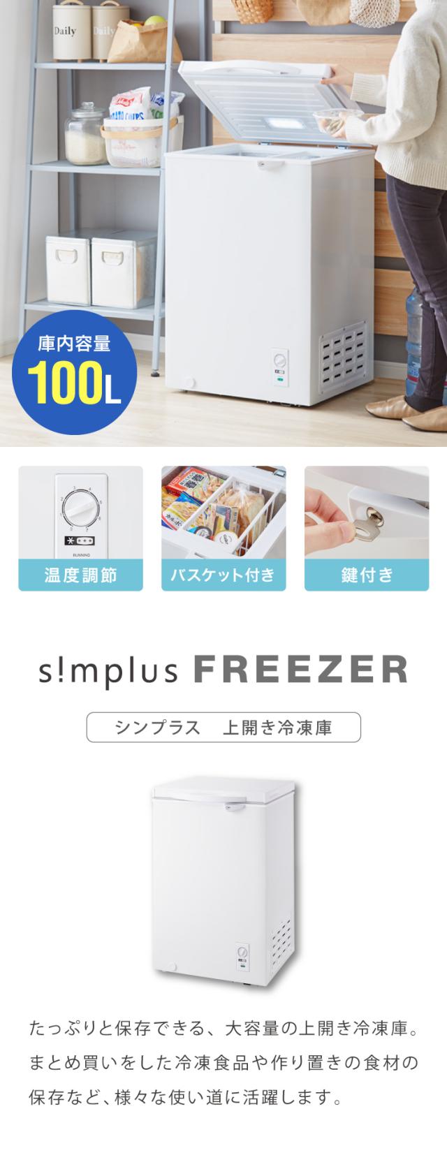 simplus 冷凍庫 上開き 100L 庫内灯付き バスケット付き 鍵付き 静音 大容量 冷凍冷蔵庫 【メーカー保証1年】