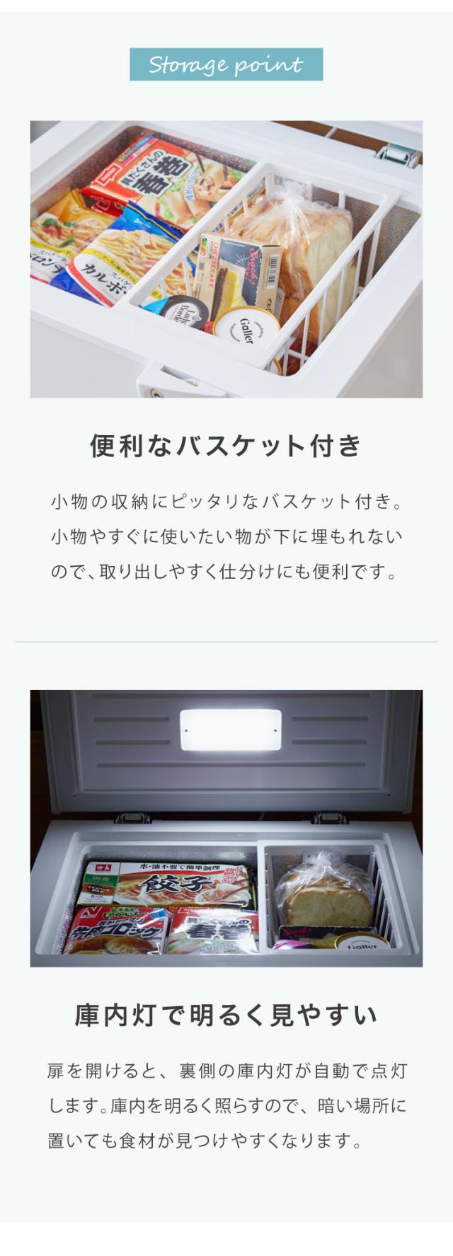冷凍庫 上開き 66L SP-66LUPD | 冷凍庫 上開き 100L SP-100LUPD | 冷凍庫 上開き 148L SP-148LUPD |