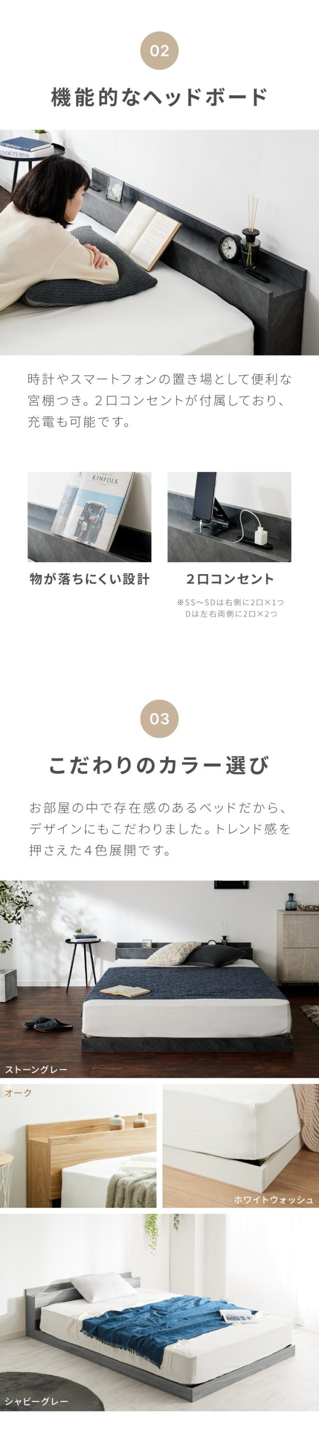 すのこベッド 高さ3段階調整 宮棚付き/バイカラー