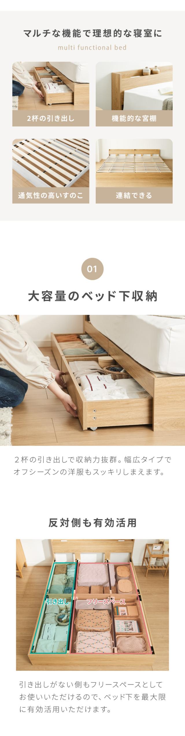 連結金具付き 収納ベッド セミシングル ベッド 収納付き ベッドフレーム 2口コンセント付き 連結ベッド すのこベッド 宮棚 引き出し付きベッド フレーム単品 一人暮らし ファミリーベッド【送料無料】