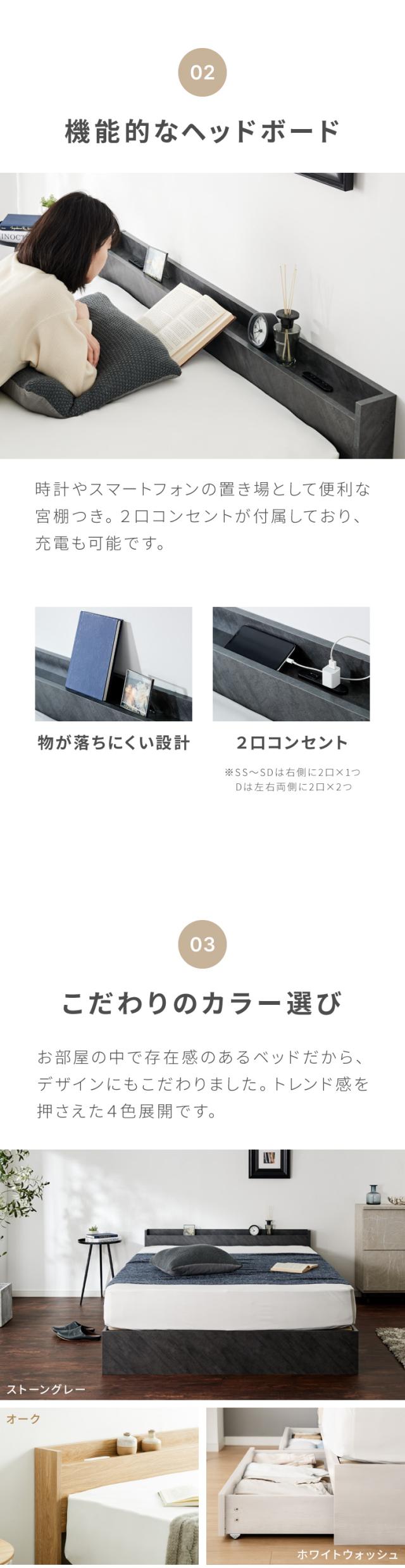 | 収納ベッド ポケットコイルマットレス付き サイズバリエーション | ||
