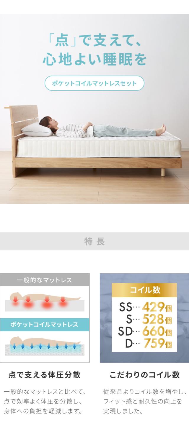 | 収納ベッド ポケットコイルマットレス付き サイズバリエーション | ||