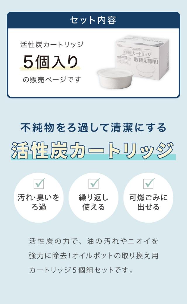 活性炭カートリッジ 5個組 オイルポット用 「脱酸ろ助剤」入り 交換用カートリッジ 5個セット 油こし交換フィルター 日本製【送料無料】