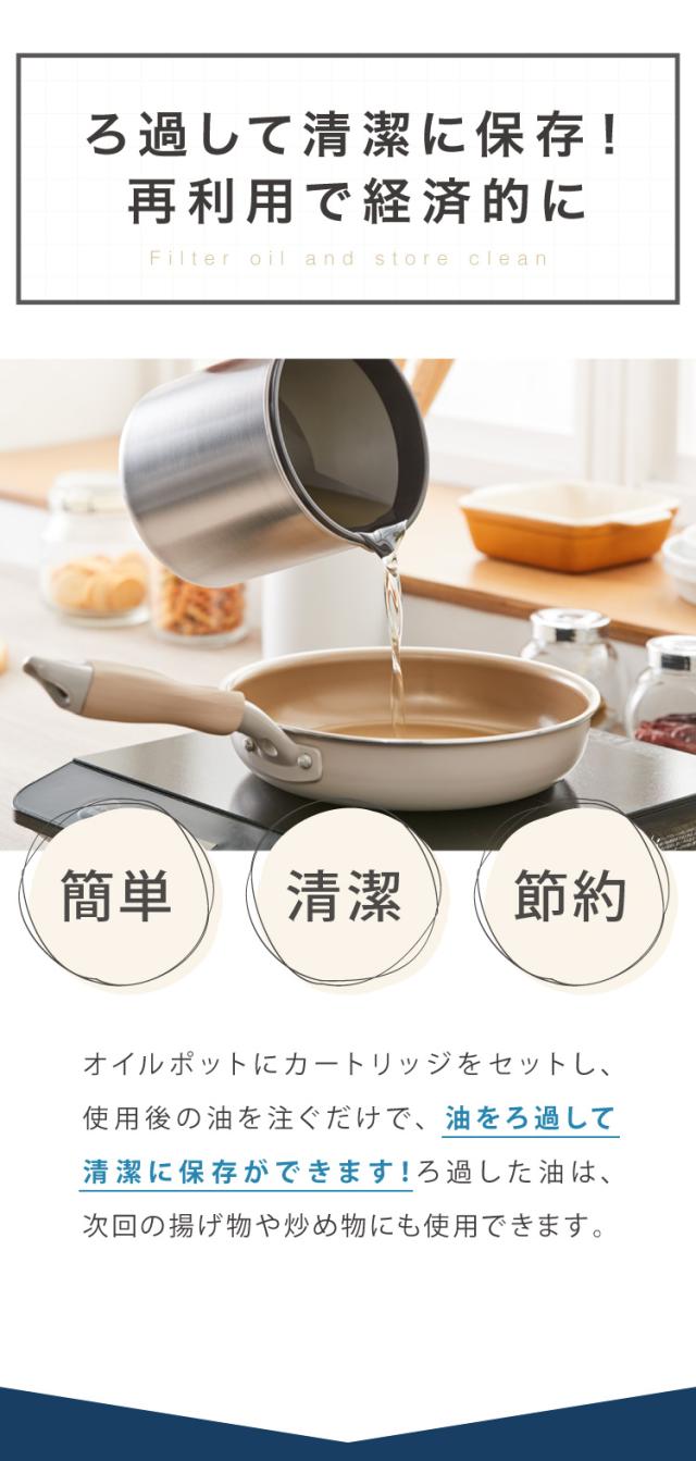 ※ろ過できる油は、一般的なサラダ油を想定しています。その他の油や、温度が下がり過ぎた油はろ過に時間がかかったり、詰まる可能性がございます。