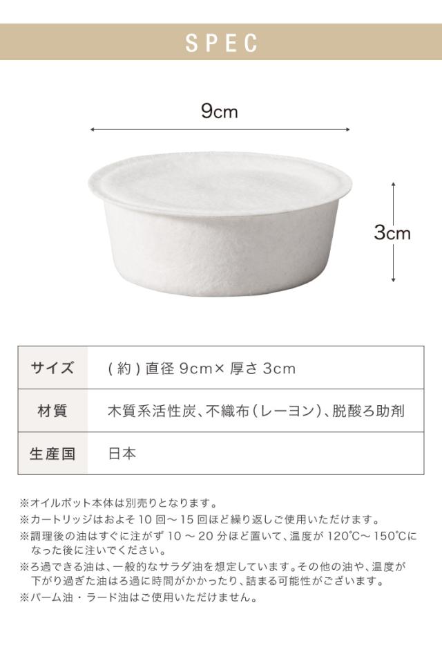 カートリッジは使用済みの油を素早くこせて、サラサラにする優れもの。