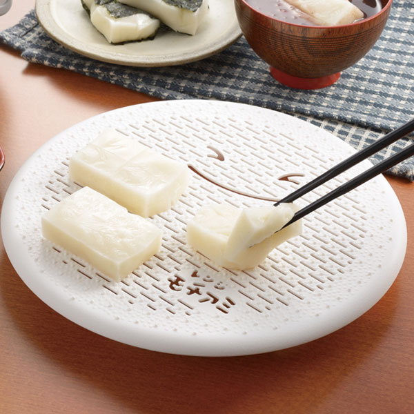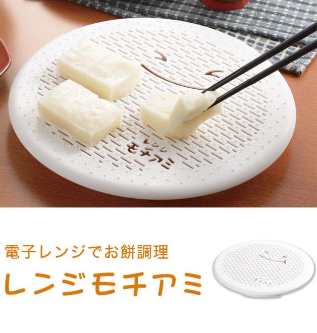 曙産業、日本製、丸型レンジモチアミ、RE-174、一度で4個作れる、ファミリーサイズ、電子レンジでお餅調理、くっつかないエンボス加工、解凍、もち網、アケボノ、AKEBONO、お正月、年末、年始、新年、切り餅、お餅、もち、調理グッズ、お雑煮、鍋