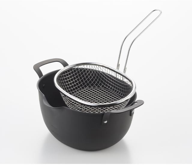 「アイカタ 鉄製揚げ鍋」にぴったりサイズ。合わせて使うことで効率よく調理できます。