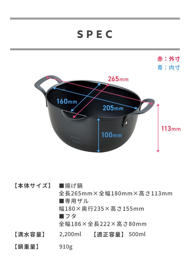 天ぷら鍋 | 揚げ鍋用蓋 | 揚げ鍋用ザル | 揚げ鍋+ザル 2点セット | 揚げ鍋+ザル+フタ 3点セット |