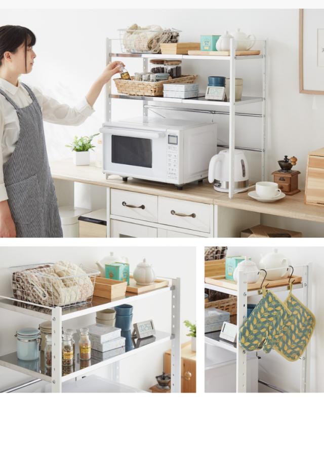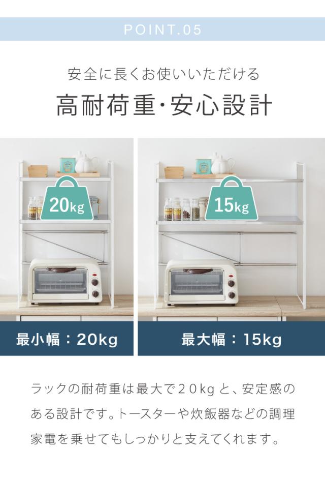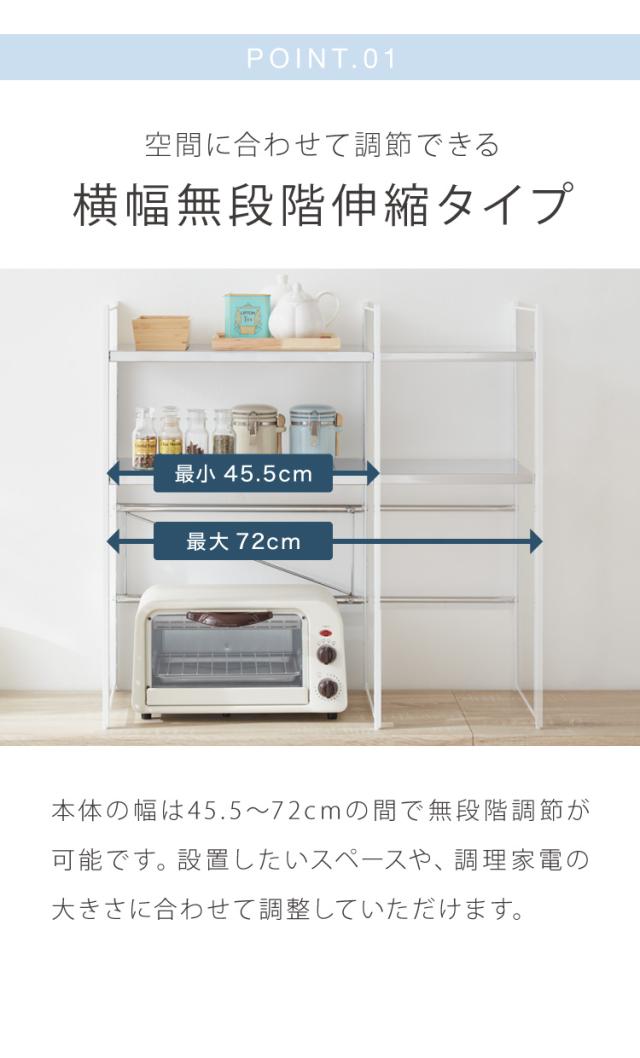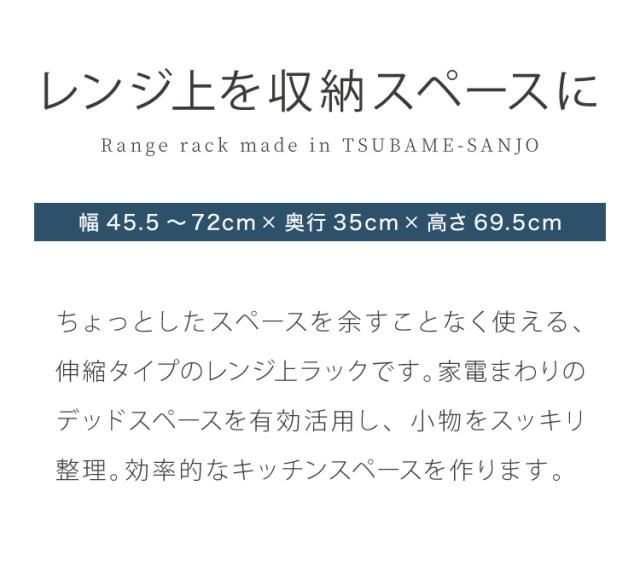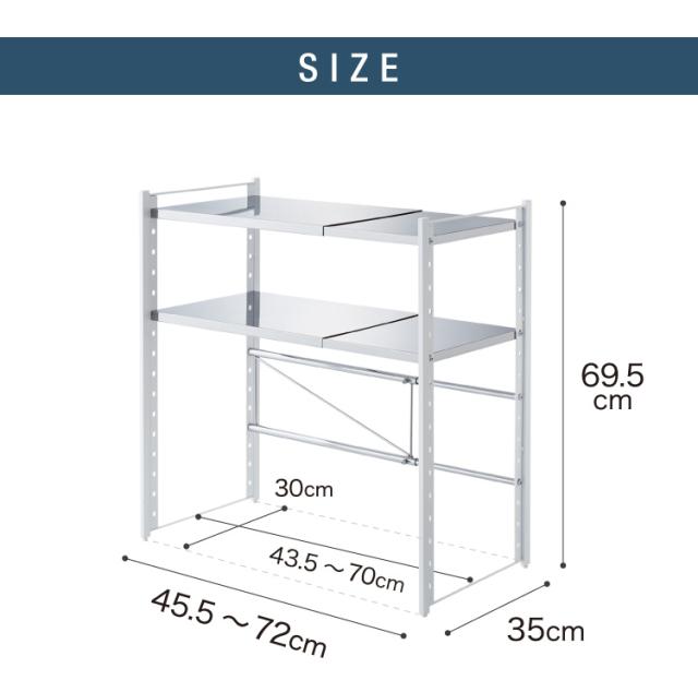 日本製 燕三条 伸縮レンジ上ラック 2段 ステンレス棚 キッチン家電をまとめて収納! 幅45.5~72 高さ調節 キッチンラック レンジ上 伸縮 棚 電子レンジ 家電上ラック カウンター上収納 頑丈 おしゃれ(代引不可)【送料無料】