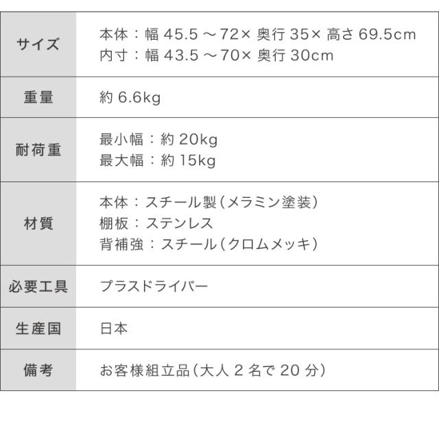内寸:約幅43.5〜70cm×奥行30cm