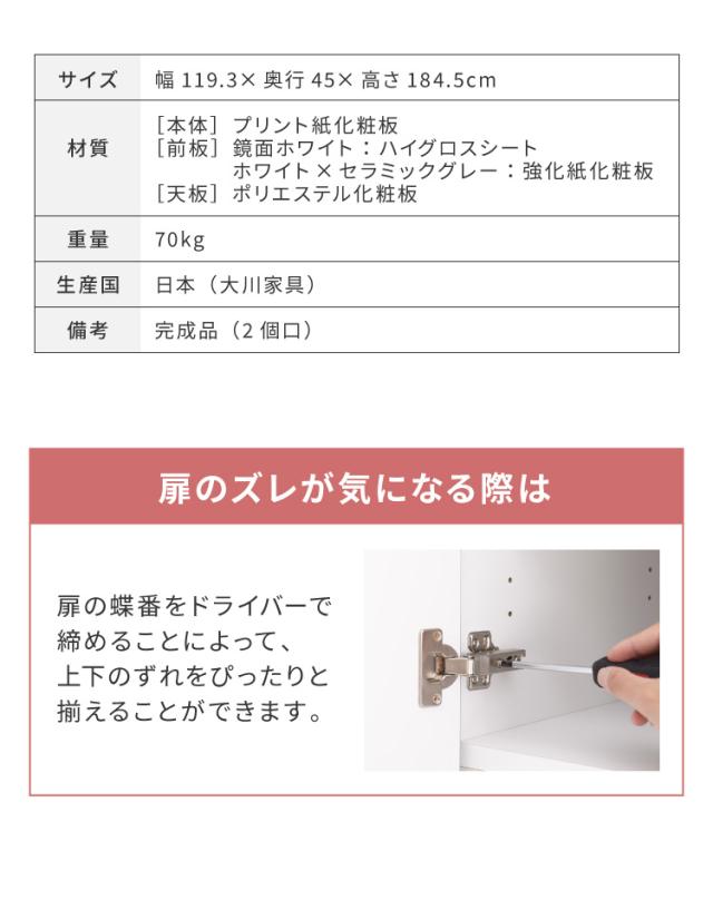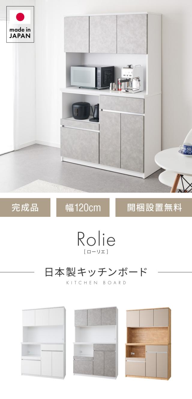 食器棚 キッチンボード 幅120cm 国産 完成品 大川家具 開梱設置無料 モイス加工 防汚加工 鏡面ホワイト セラミック調グレー オーク グレージュ 大容量 キッチン 収納(代引不可)【送料無料】