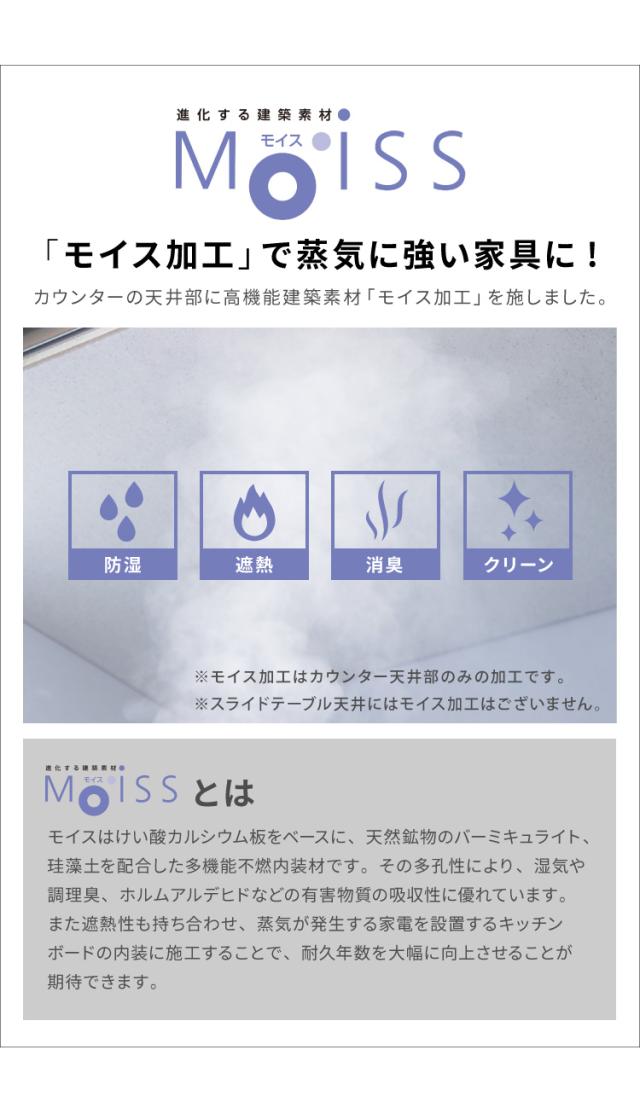 家具の耐久性を向上させる蒸気に強いモイス加工を施しています。
