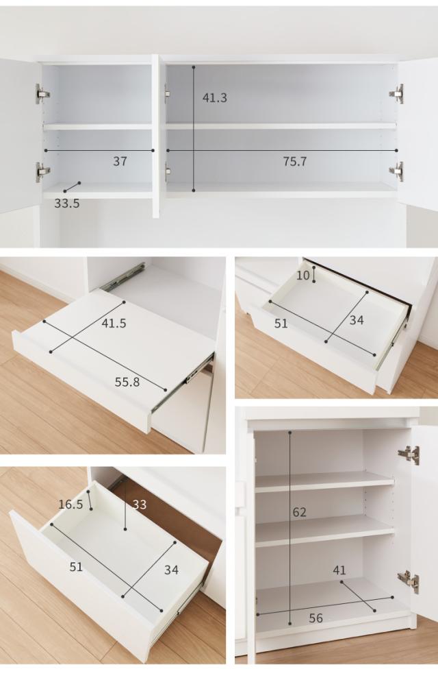 [上段開き扉(向かって右側)]幅75.7×高さ41.3×奥行き33.5cm