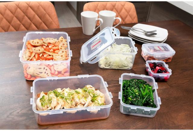 4点ロックしっかり密閉!抜群の密閉力の4面ロック構造で食材からの汁漏れや臭い漏れを防ぎます。環境ホルモンの一種“BPA”を含まないので赤ちゃんにも安心。蓋を外せば電子レンジでの使用もOKです。冷凍室・食洗機も使用OKです。サイズ展開が豊富なので様々な用途で使える!