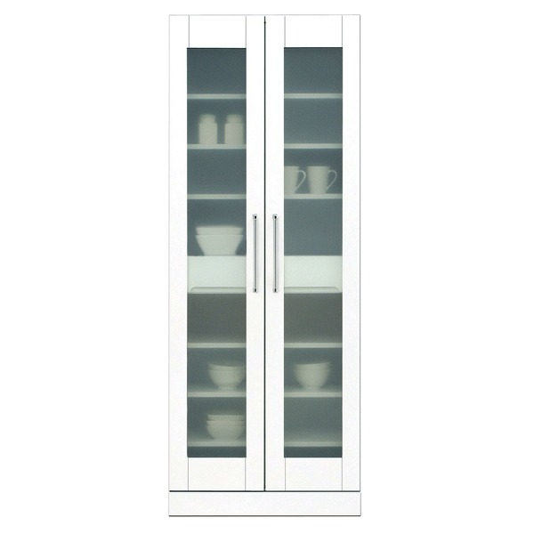 食器棚(キッチン収納庫) 【幅70cm】 飛散防止加工ガラス扉/可動棚付き 日本製 ホワイト(白) 【完成品】(代引不可)