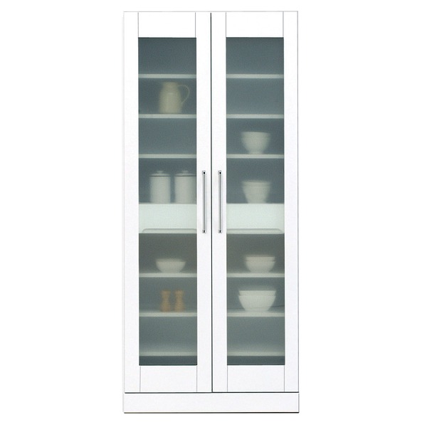 食器棚(キッチン収納庫) 【幅80cm】 飛散防止加工ガラス扉/可動棚付き 日本製 ホワイト(白) 【完成品】(代引不可)