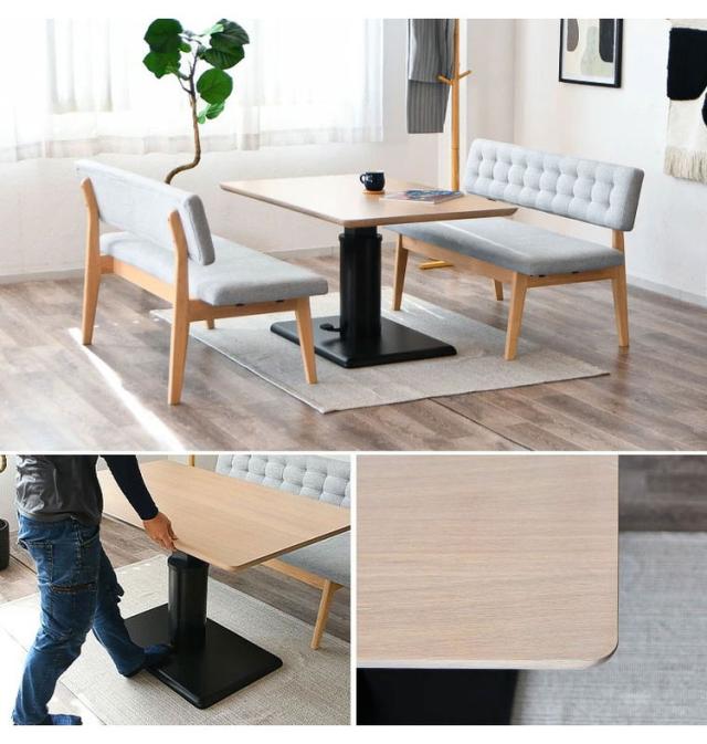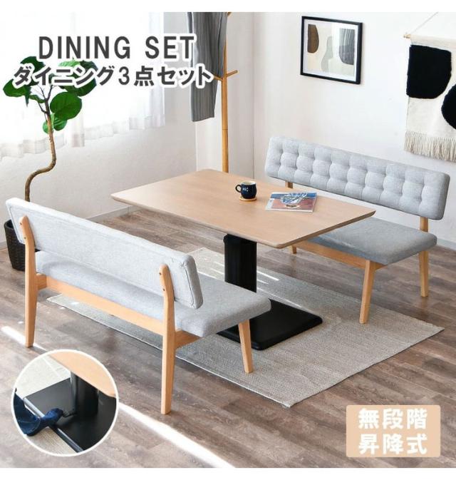 ダイニングセット 3点セット 昇降テーブル ベンチ 昇降式テーブル 高さ調整 長方形 ダイニングテーブルセット 4人用 ベンチ 長椅子 カフェテーブル 2脚セット チェア 食卓椅子 シンプル(代引不可)【送料無料】