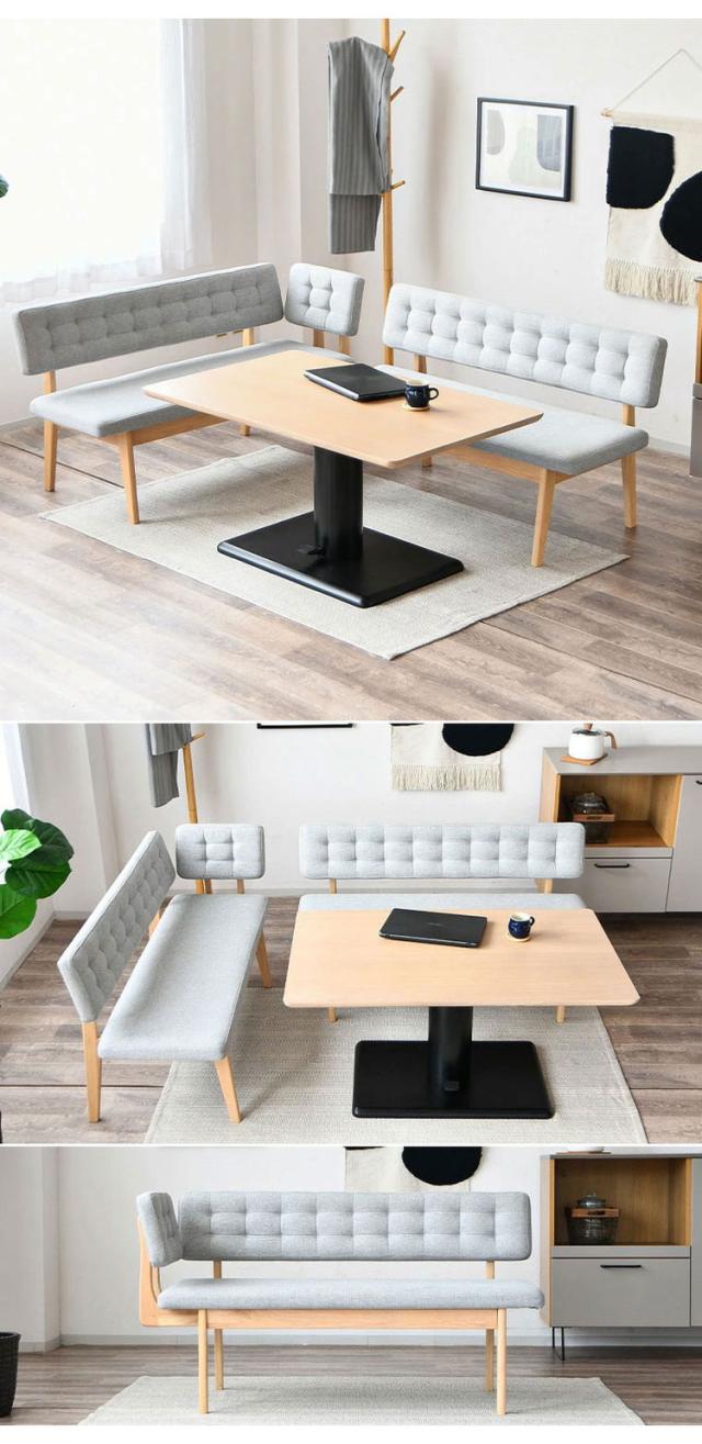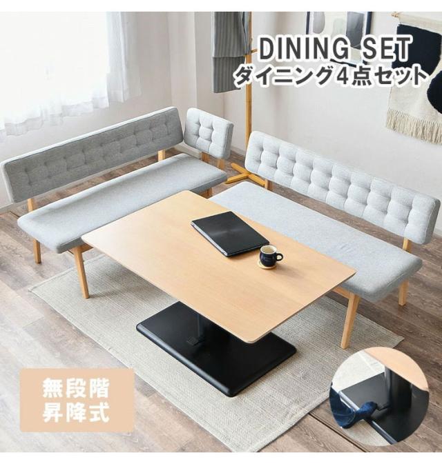 ダイニングセット 4点セット 昇降テーブル ベンチ サイドアーム 昇降式テーブル 高さ調整 長方形 ダイニングテーブルセット 4人用 ベンチ 長椅子 サイドアーム付き カフェテーブル 2脚セット シンプル(代引不可)【送料無料】